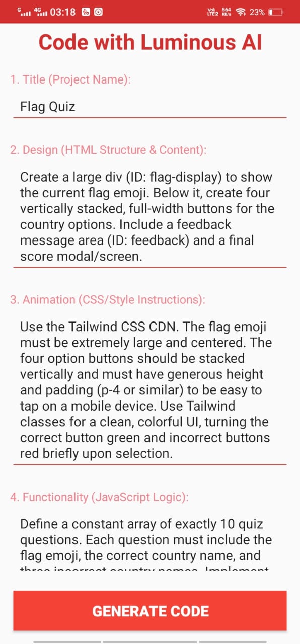 - 2️⃣ Generate: Tap the Generate button to send your structured request to Luminous AI.